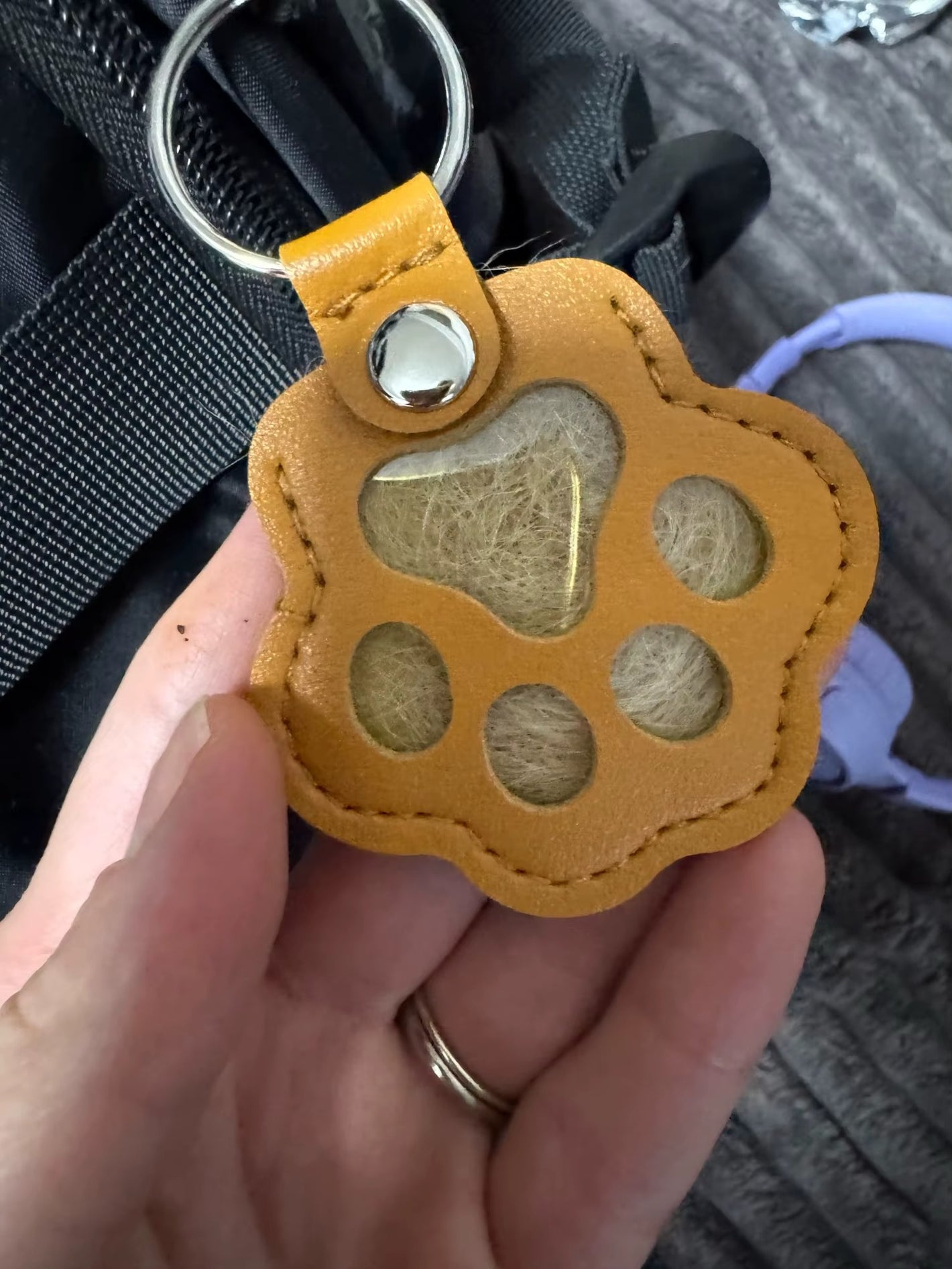Delikatny brelok z okienkiem na sierść Twojego pupila. Zawsze przy Tobie – w kluczach, torebce czy przy plecaku. Mały detal, który niesie ze sobą ogrom wspomnień. 🐾